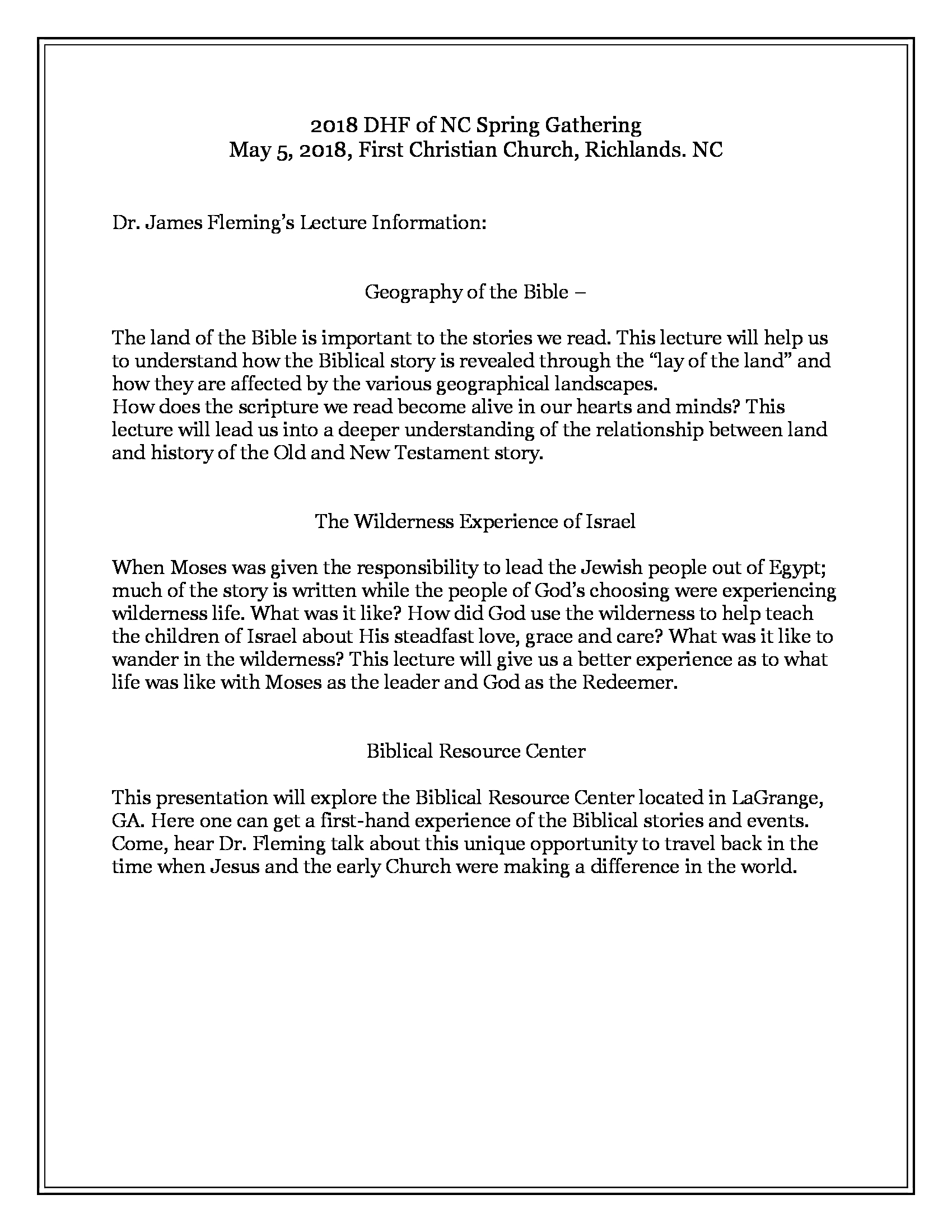 2018-DHF-of-NC-Spring-Gathering-Lectures Next → Share this:Tweet Email a link to a friend (Opens in new window) Email Print (Opens in new window) Print More